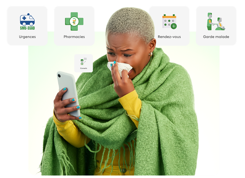 Des services de santé disponibles en ligne, sur mobile, par USSD ou via notre centre d’appel multilingue — pour que chacun puisse se soigner, où qu’il soit.