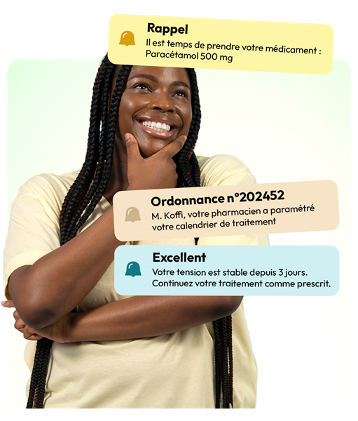 Notre service de rappels de prise de médicaments vous aide à suivre vos traitements facilement et en toute sécurité. Recevez vos rappels par SMS ou via plusieurs canaux (application, WhatsApp) et restez en bonne santé, chaque jour.